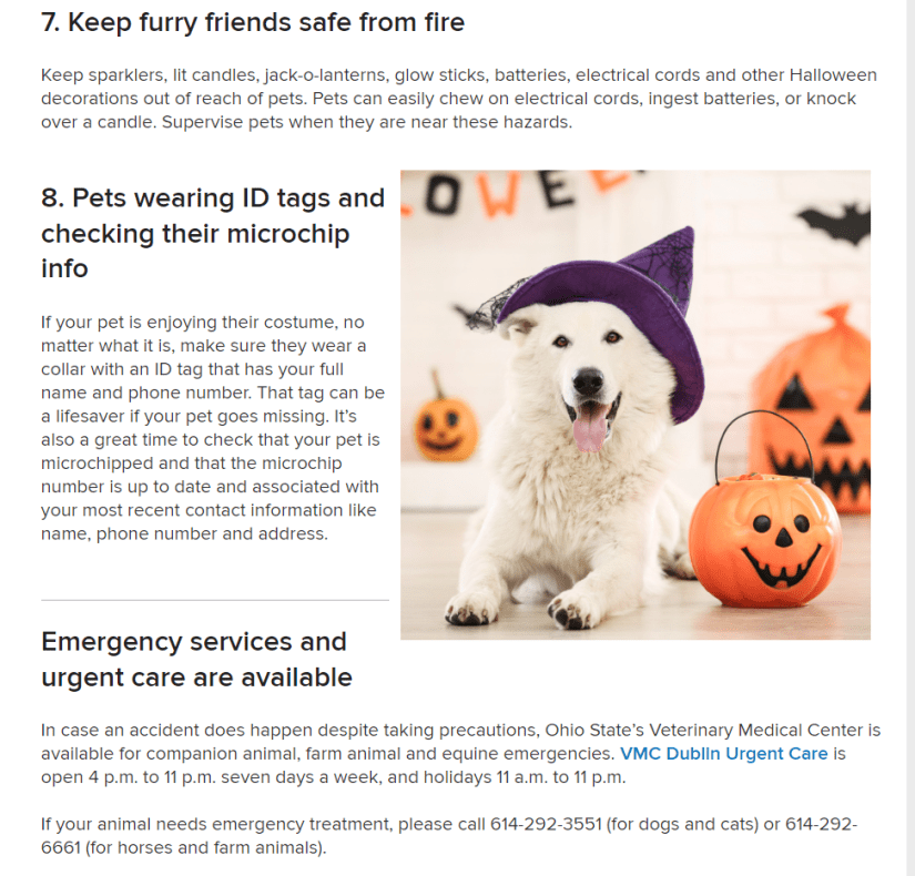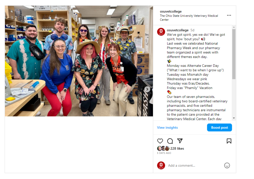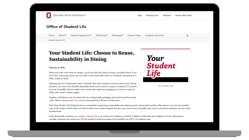 My Work Marketing Campaign: Sloopy’s Game Day Buffets Social Media Campaign: Spotlight on Farm Animal Service Marketing signage: Opportunity for user-generated content in OSU Vet Med exam rooms Online Article: Ohio State University-wide Career and Internship Fair Marketing Signage: Buckeyes Scream for Ice Cream Social Media: Dining Services Recruitment Campaign Viral Triplet Calves Social Media Post at Ohio State Vet Med Marketing Campaign: Reusable Sleeves for Dining Services Web article: Equine performance arena for Ohio State Vet Med Email: University-Wide Career and Internship Fair Published article: Campus Dining Today trade magazine Video: Thanking planned gift donors Marketing Campaign: Ohio State Career and Internship Fair Marketing Signage: Share a Table Campaign Published article: Campus Dining Today trade magazine Web article: Your Student Life: Choose to Reuse, Sustainability in Dining Social Media: Ohio State VMC Pharmacy team spirit week Print Advertisement: The Lantern Ad for Ohio State Dining Services Online article: Halloween Pet Safety Tips blog post for OSU VMC