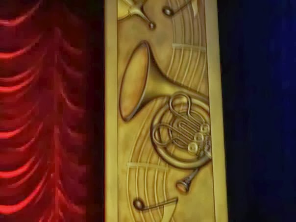 | In Mickey’s Phillarmagic (in Fantasyland in the Magic Kingdom) look at the right side of the stage to notice this Hidden Mickey in the French Horn.
