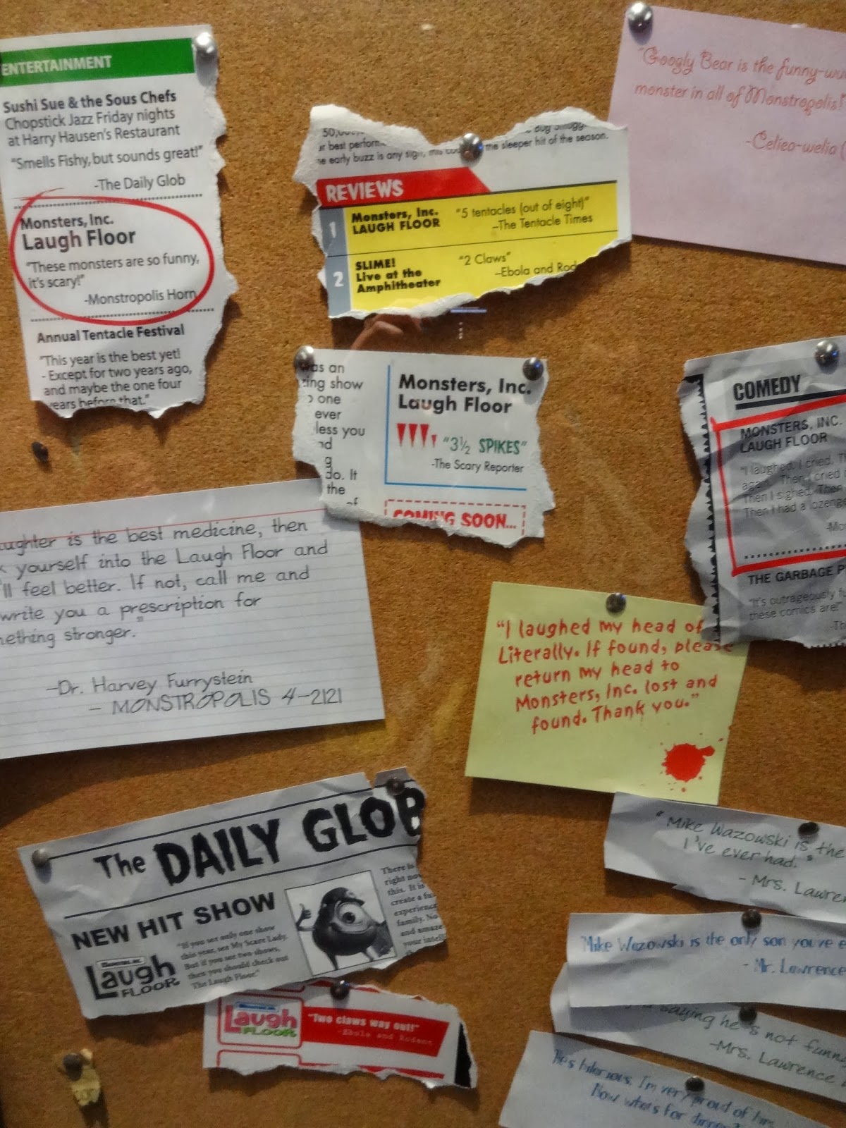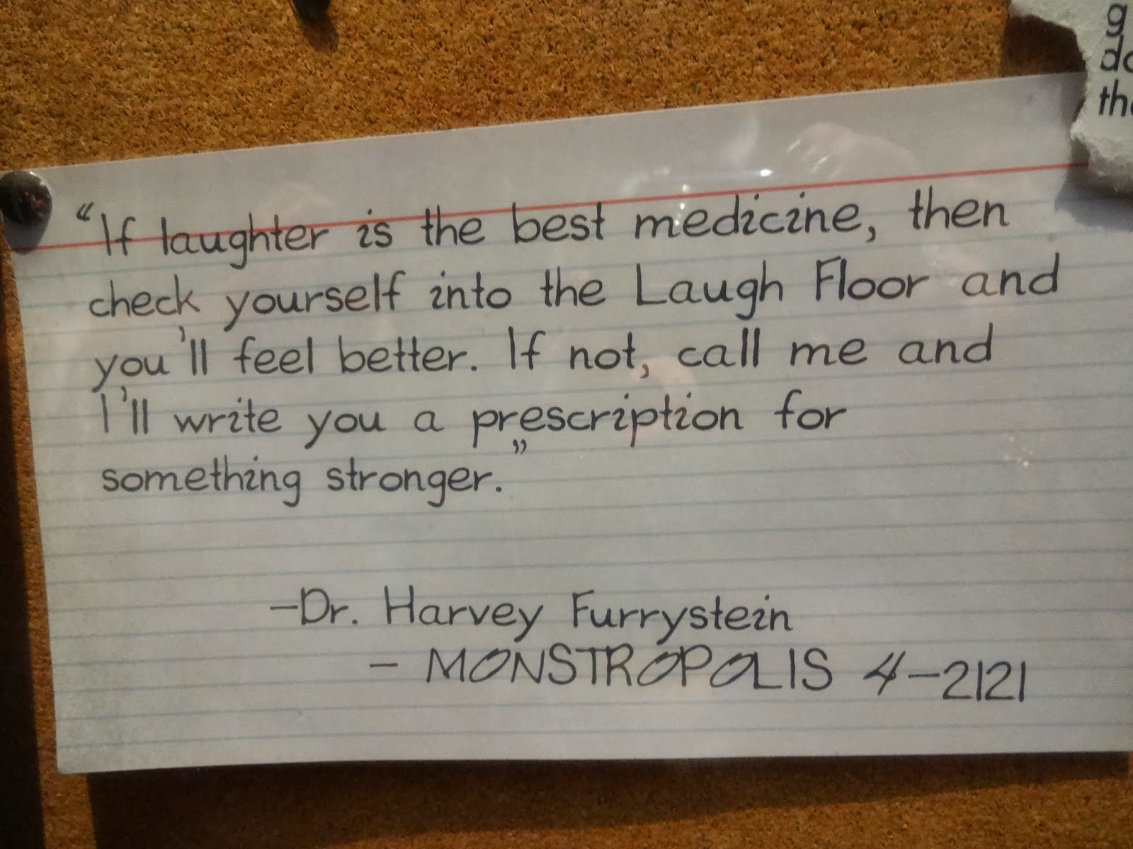 Okay this isn’t a Hidden Mickey, but in Monsters Inc. Laughfloor in Tomorrowland of Magic Kingdom, read the notes in the pre-show room.