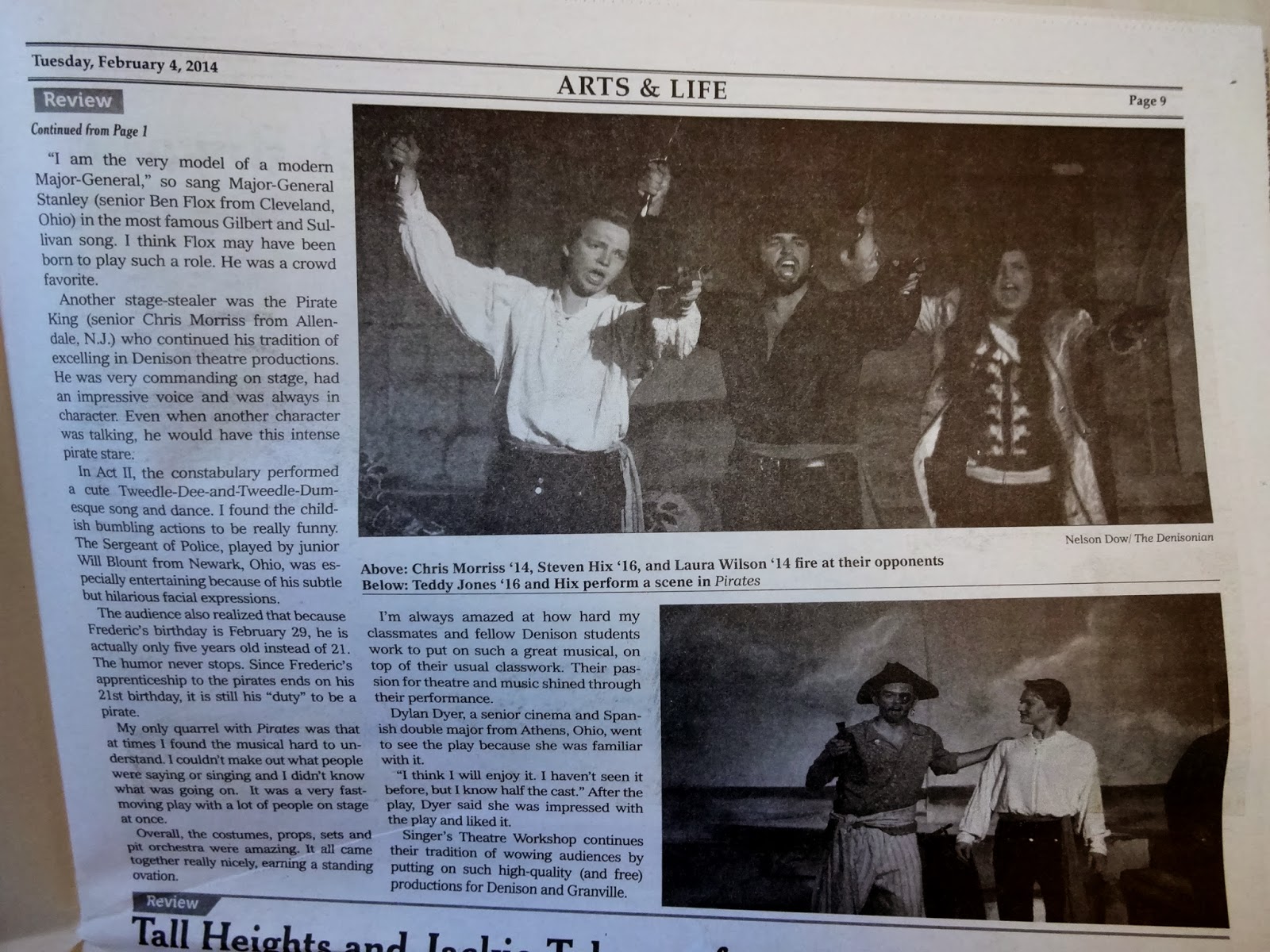 Another stage-stealer was The Pirate King (Chris Morriss) who continued his tradition of excelling in Denison theatre productions. He was very commanding on stage, had an impressive voice and was always in character.