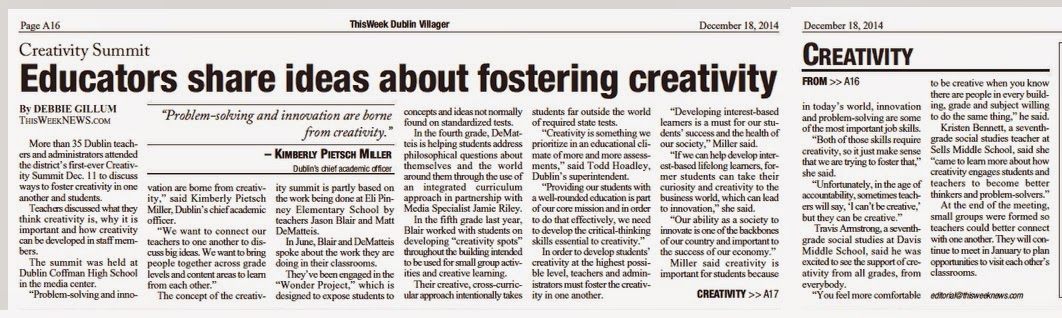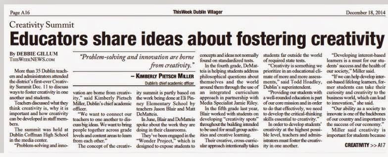 More than 35 Dublin teachers and administrators attended the district’s first-ever Creativity Summit Dec. 11 to discuss ways to foster creativity in one another and students.