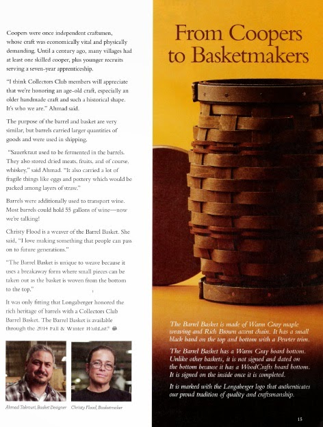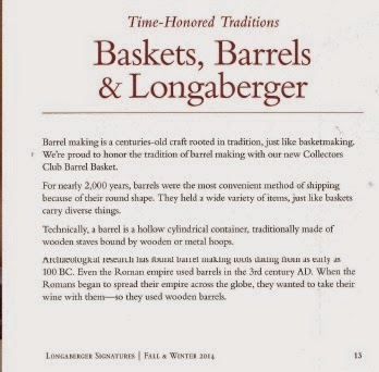 It was only fitting that Longberger honored the rich heritage of barrels with a Collectors Club Barrel Basket. The Barrel Basket is available through the Fall/ Winter WishList.