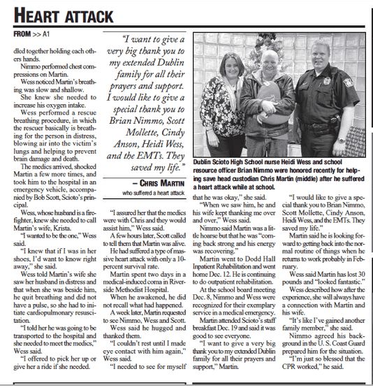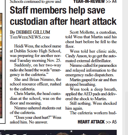 The medics arrived, shocked Martin a few more times, and took him to the hospital in an emergency vehicle, accompanied by Bob Scott, Scioto’s principal.