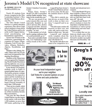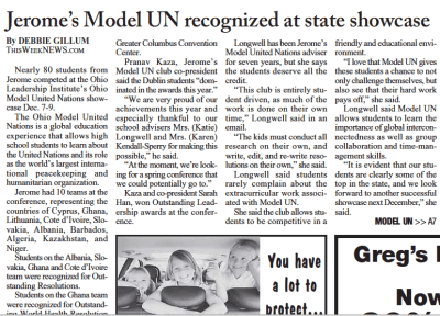 Pranav Kaza, Jerome’s Model UN club co-president said the Dublin students “dominated in the awards this year.”