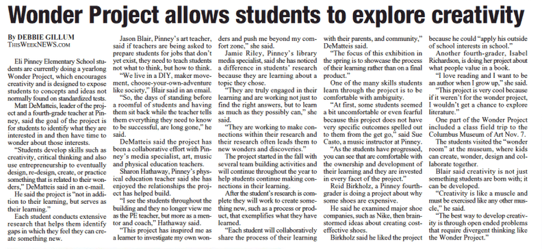 Matt DeMatteis, leader of the project and 4th grade Pinney teacher, said that the goal of the project is for students to identify what they are interested in and then have time to wonder about those interests.