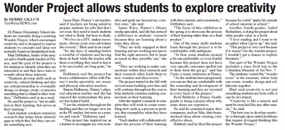 Elementary students are currently doing a year-long Wonder Project, which encourages creativity and is designed to expose students to concepts and ideas not normally found on standardized tests.