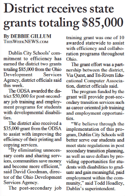“We believe through the implementation of this program, Dublin City Schools will better serve our students and meet state regulations in post secondary transition planning, as well as save dollars by providing opportunities for students with disabilities to graduate and gain meaningful, paid employment within the community,” said Todd Hoadley, Dublin’s superintendent.