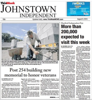 American Legion Post 254 in Johnstown is building what members believe will be the largest veterans memorial in the area.
