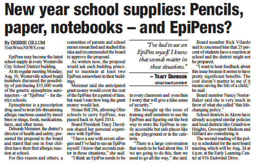 Board President Tracy Davidson shared her personal experience with EpiPens.