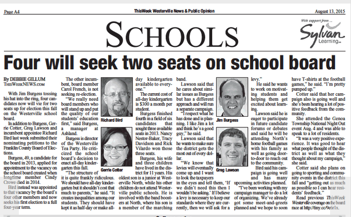 Read previous ThisWeek Westerville coverage on the board race at http://tiny.cc/9e6r1x.