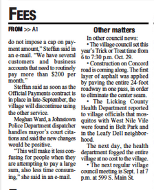 * The Licking County Health Department reported to village officials that mosquitos with West Nile Vile were found in Belt Park and in the Leafy Dell neighborhood.