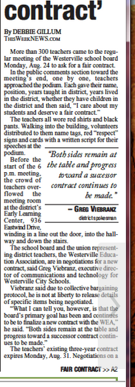 “What I can tell you, however, is that the board’s primary goal has been and continues to be to finalize a new contract with the WEA,” he said. “Both sides remain at the table and progress toward a successor contract continues to be made.”