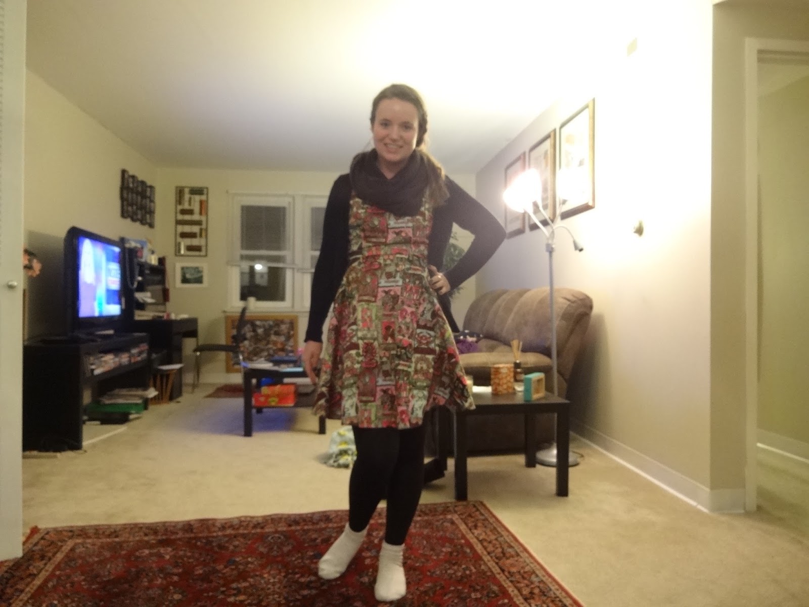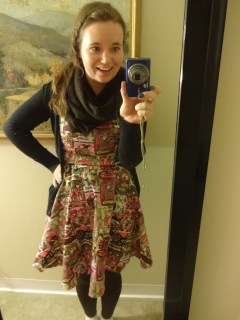 I wore it today to work and made it winter appropriate with leggings, boots, a cardigan and scarf.