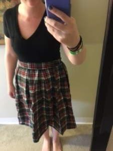 Last, I ordered this plaid skirt. The skirt was longer than I expected but then again I think I have a warped definition of what a “long” skirt is. I like the plaid pattern of it and was looking for a school uniform type skirt.