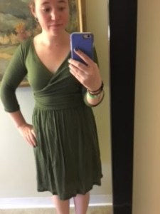 First, I wanted a long sleeve dress to wear to work and that wasn’t as short as some of my other dresses. I like this one because of the killer neckline. Makes my boobs look three sizes bigger! The color matches my eyes and the skirt is long and flowy. I wore this with leggings, boots and a scarf on Saturday.