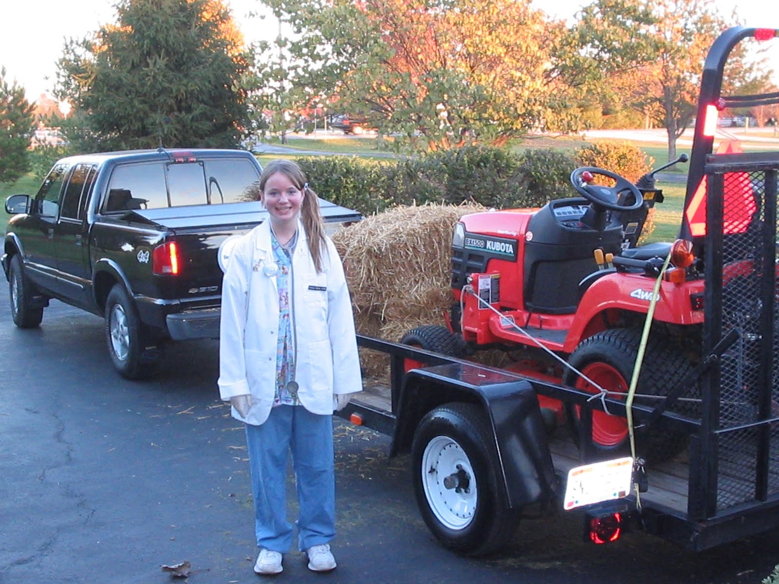 The next year, we went Trick-or-Treating (as juniors in high school) as Leaf Blowers.
