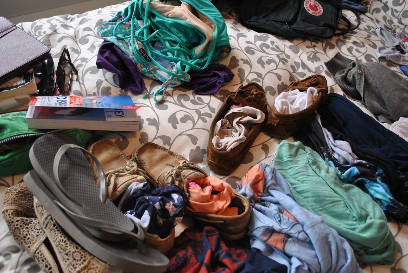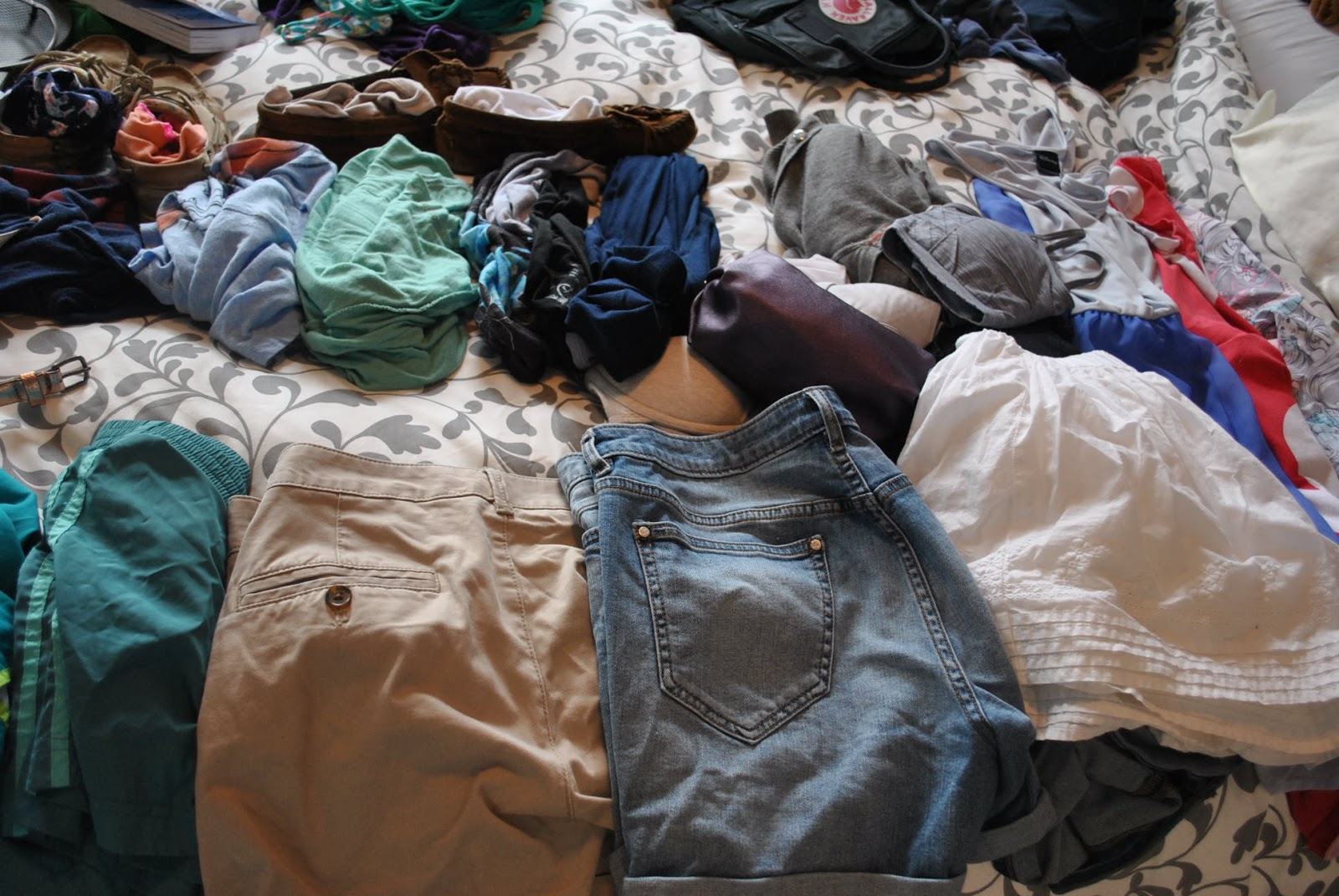 | I like to lay out everything on my bed so I can get a since of how much I’m bringing |