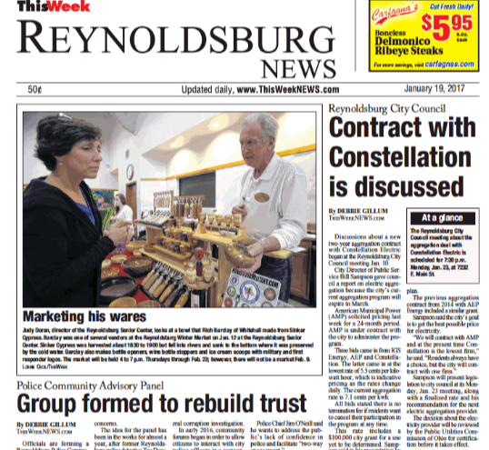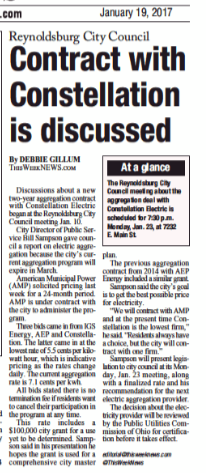Discussions about a new two-year aggregation contract with Constellation Electric began at the Reynoldsburg City Council meeting Jan. 10.
