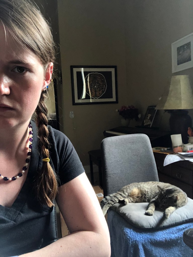 We gave the old simple grey chair to our new cat, Carl. We adopted him in late March, very shortly after we began working from home. We’d already talked about getting a cat but were hesitant about being home enough or when the right time would be. The time is now! We’re home all the time! We like working next to Carl. He either naps or meows, demanding we play with him. It’s nice to have an entertaining cat in our lives.
