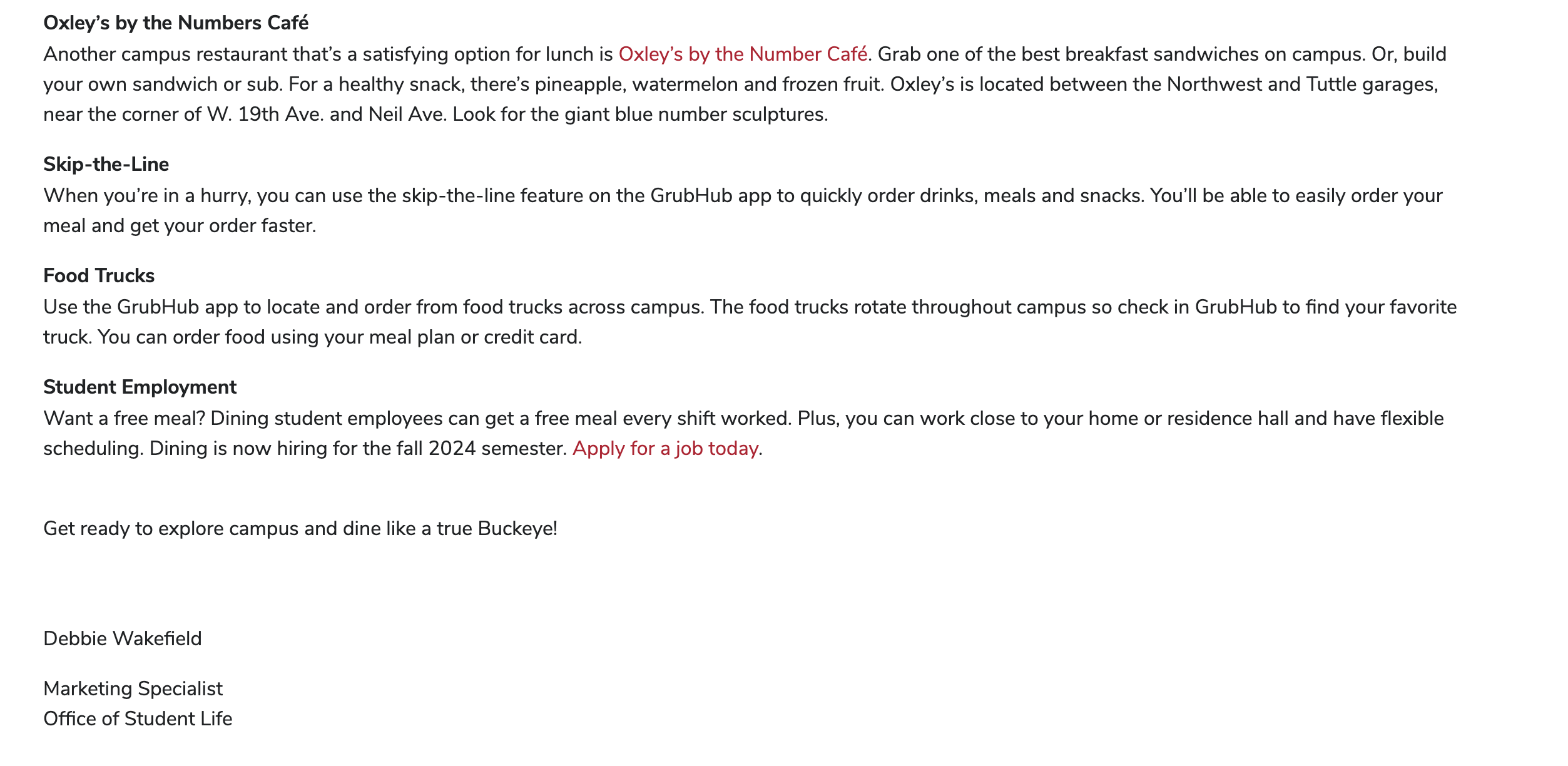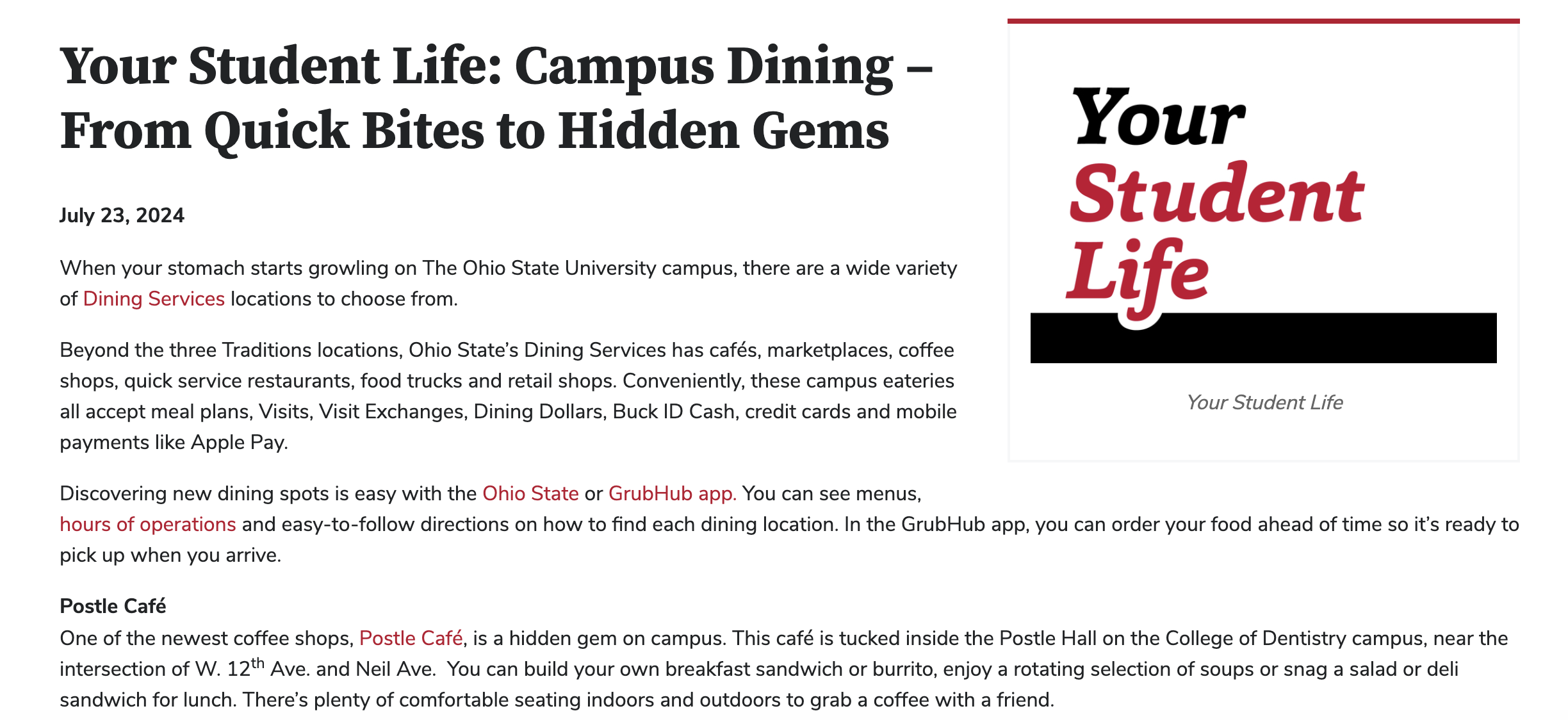 Your Student Life: Campus Dining – From Quick Bites to Hidden Gems: https://studentlife.osu.edu/articles/your-student-life-campus-dining-from-quick-bites-to-hidden-gems/