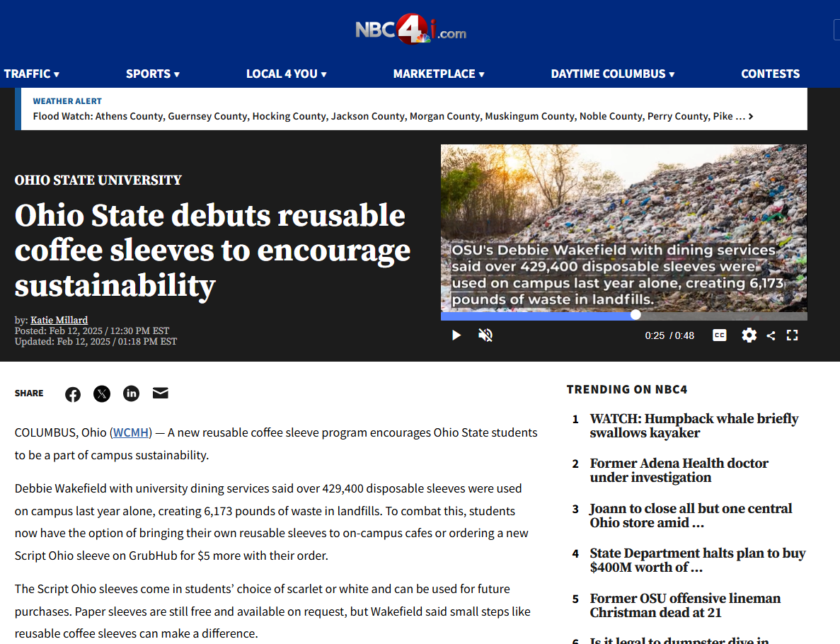 From this article, I was quoted in an NBC4 story about Ohio State Dining Services sustainability efforts, specifically the new reusable sleeves.