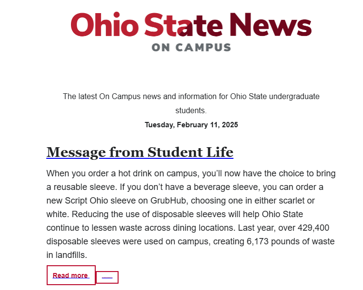 The article was featured on Ohio State Student Life’s homepage as well as in the onCampus Today newsletter to all students.