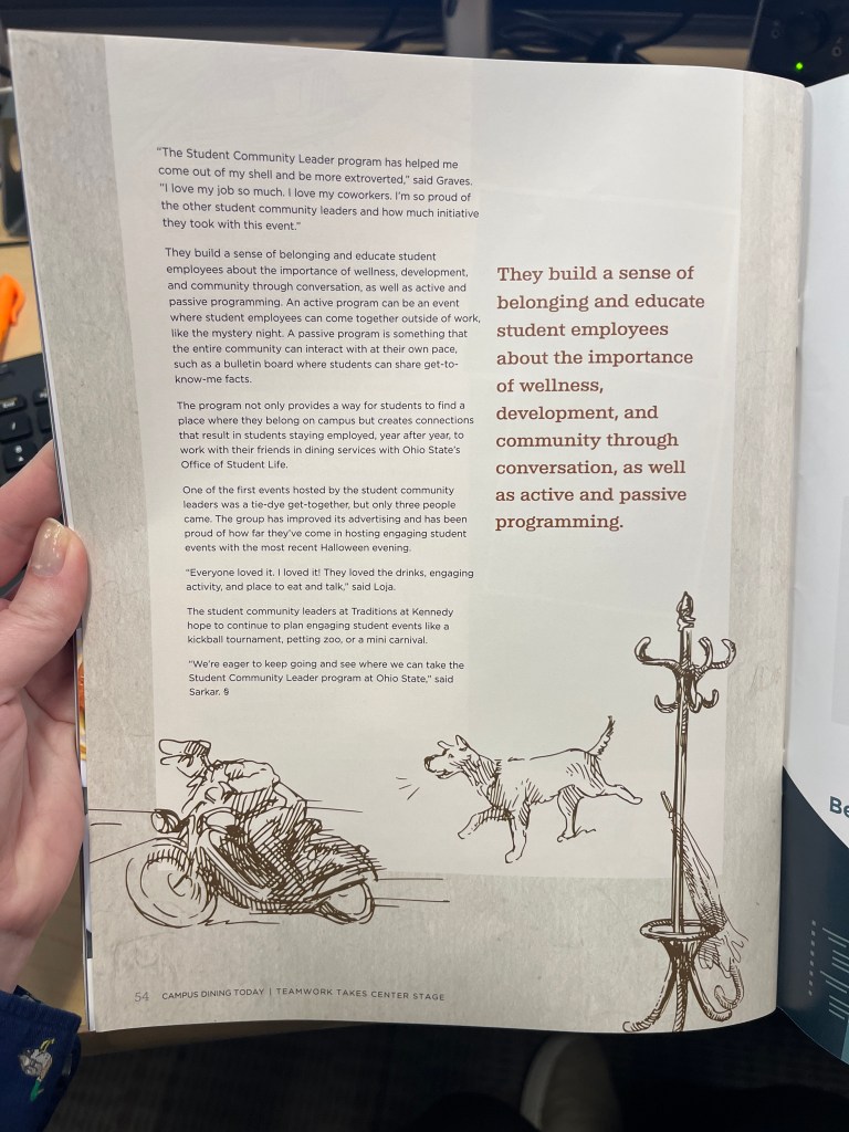 The program not only provides a way for students to find a place where they belong on campus but creates connections that result in students staying employed, year after year, to work with their friends in Dining Services with Ohio State’s Office of Student Life.