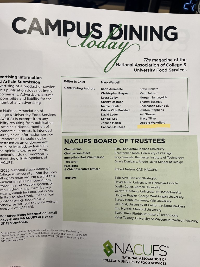 Article published in Campus Dining Today, the trade magazine of National Association of College & University Food Services (NACUFS). This magazine has a print circulation of 2,600 and digital circulation of more than 6,000.