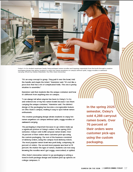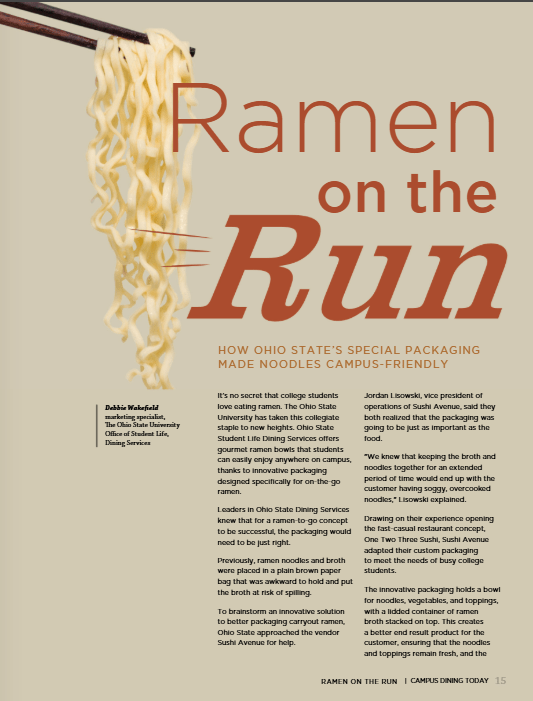 Ohio State’s innovative ramen-to-go packaging is setting a trend in both package design and student pick-up options on college campuses.