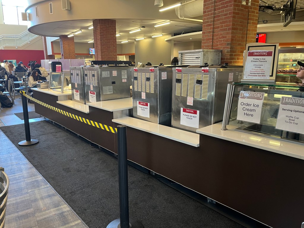 The signs were needed because the ice cream station was transitioning from self-serve to employee service. Signage was needed to communicate that students now needed to order their ice cream by choosing a bowl and flavor.