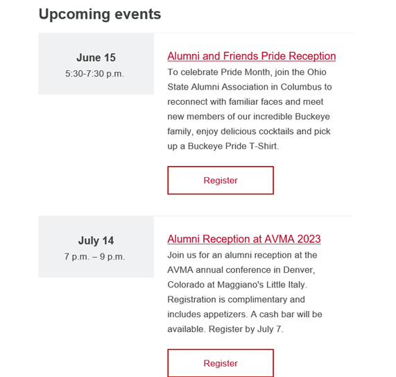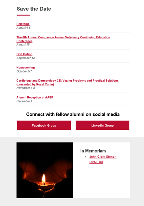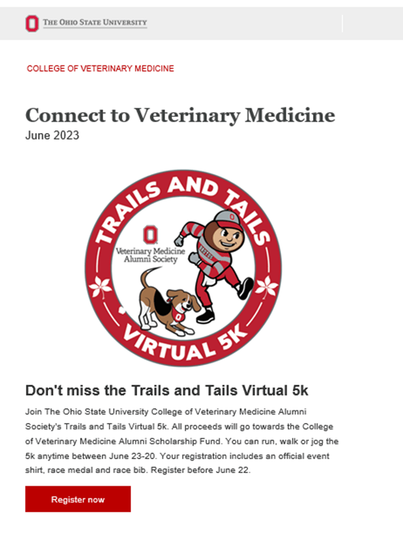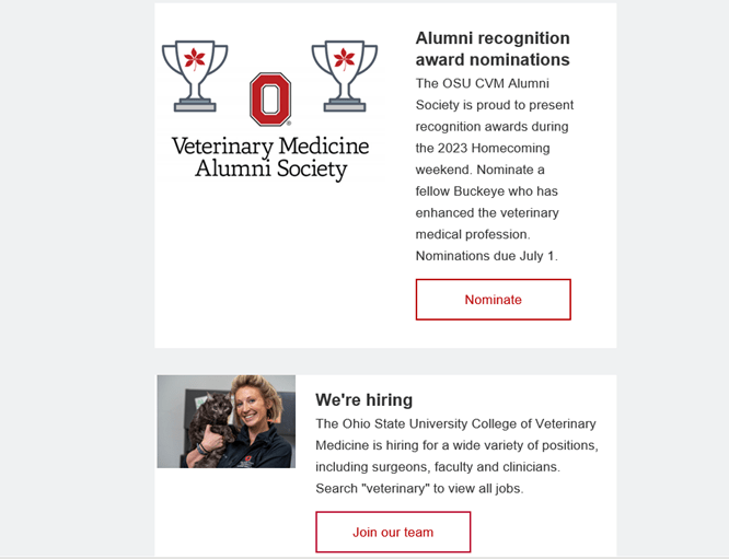 At The Ohio State University College of Veterinary Medicine, we send our alumni a monthly newsletter to keep them connected to the college.